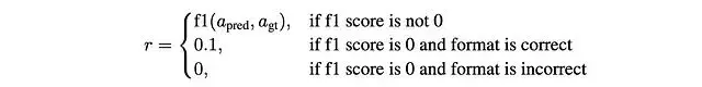 ReSearch的獎勵函數設計包含兩個核心組成部分:答案獎勵和格式獎勵: