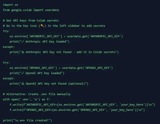 注意:記得把 API key 存到 Colab 的 secrets 裏(側邊欄那個鑰匙圖標),別直接寫代碼裏。