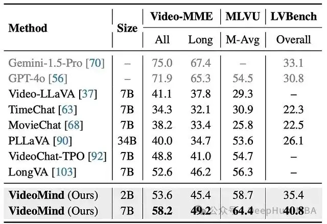 - 最先進的性能: VideoMind 在所有三個類別中的眾多基準上都實現了 SOTA 結果。