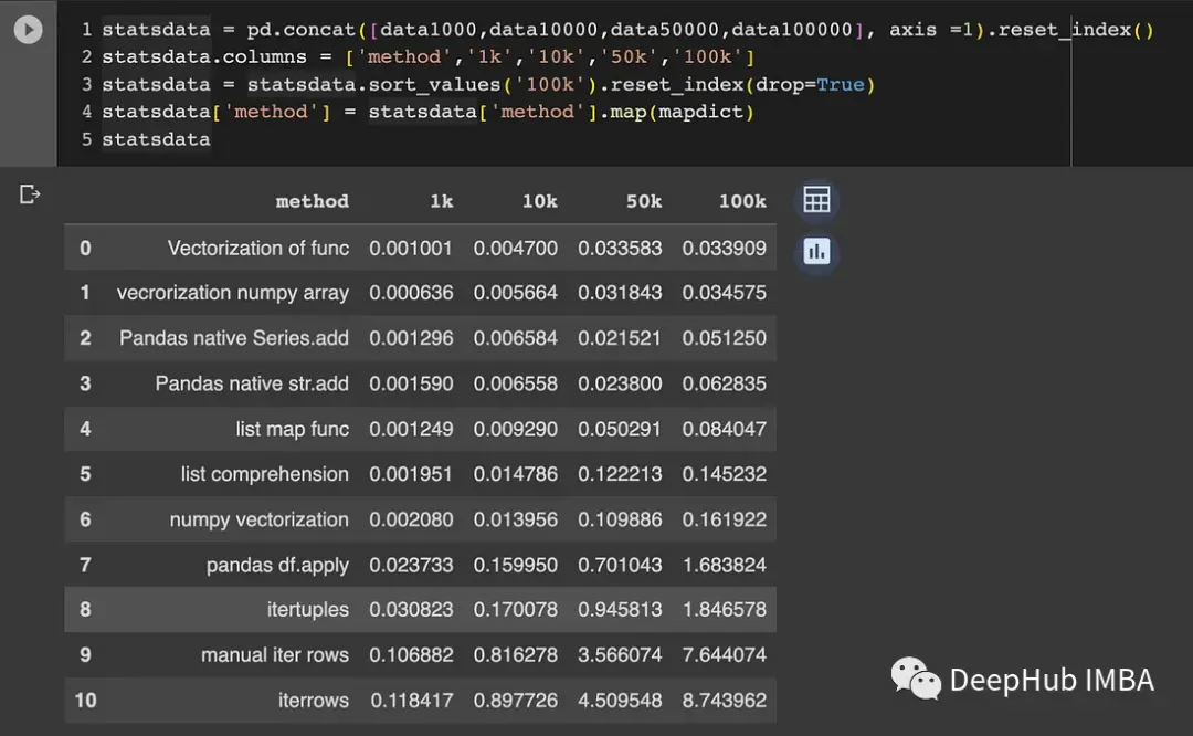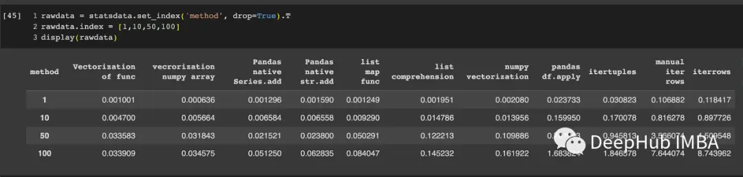 創建一個空DF,編寫一個函數將輸出%%timeit作為一行添加到數據框中