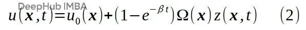 方程(1)給出了一種強制u(x, 0) = u₀(x)的方式。β是常數或者可訓練的時間衰減參數,決定了從初始狀態到熱擴散狀態的過渡期長短。任意函數v(x, t)是神經網絡的輸出,不過還有點額外的處理。