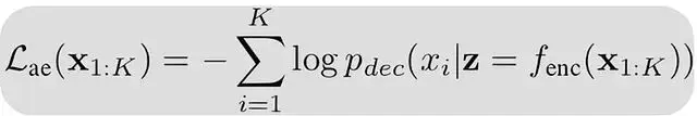 傳統自編碼器創建潛在空間 z,用作解碼器重建輸入的先驗知識,公式摘自原始 CALM 論文。