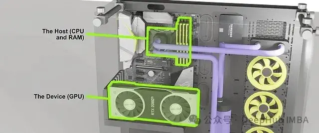 如上圖所示,CPU 和 GPU 可以看作是兩個獨立的計算單元,各自擁有自己的資源,並通過特定的接口進行通信。CPU 進行通用計算並使用 RAM 存儲數據,而 GPU 專門進行並行計算,使用顯卡上的 VRAM 存儲數據。在複雜的數據處理任務中,這兩個系統需要協同工作。