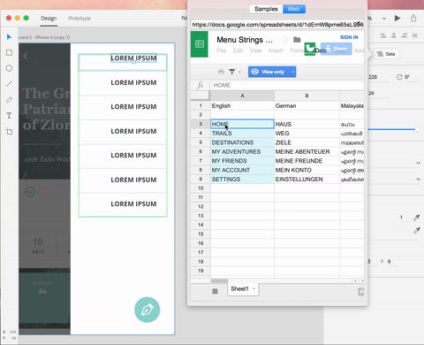Phase 1 is complete and available for Mac OS, where designers can drag text files from Finder, to feed a Repeat Grid. The next phase will focus on sample data and bringing content from the Web.