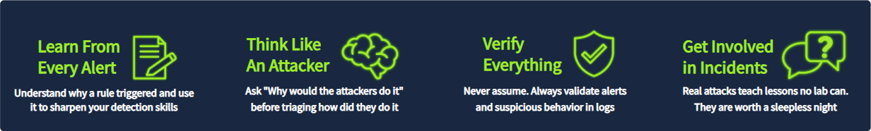 儘管安全運營中心 (SOC)分析師通常不直接管理系統,但瞭解常見的攻擊和防禦措施,並與 IT 部門分享,是拓寬網絡安全視野的關鍵。如果您想快速成長併成為優秀的團隊成員,請隨時關注最新的威脅,並與他人分享相關信息!