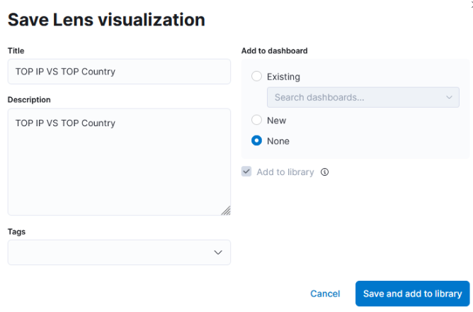 Add from Library. - 點擊可視化圖表和已保存的搜索。它將被添加到儀表板中。