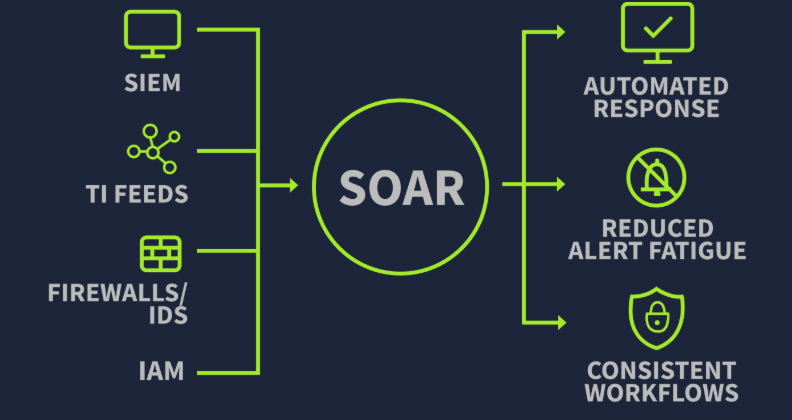 SOAR允許用户通過一個統一的界面使用不同的工具執行操作。正如我們之前在瞭解其自動化功能時所看到的,它還能自動執行響應。例如,SOAR可以按照VPN暴力破解的劇本,在防火牆上阻止 IP 地址,在IAM中禁用用户,並創建包含所有詳細信息的工單。