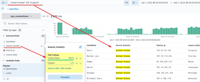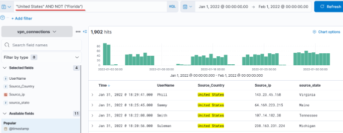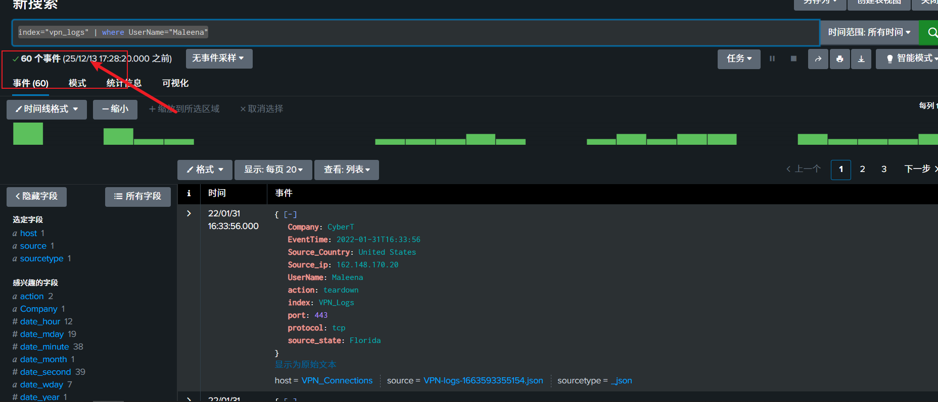 我們將利用以上所學知識創建一個表格,顯示失敗嘗試中涉及的用户和 IP 地址。