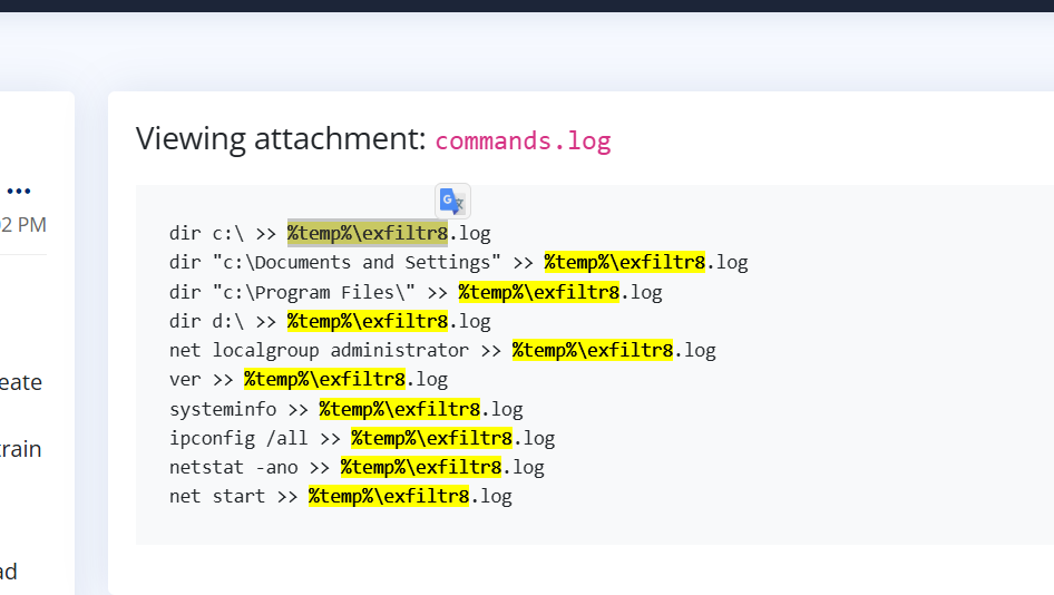 但答案是檢測文件,那就是%temp%\exfiltr8.log
