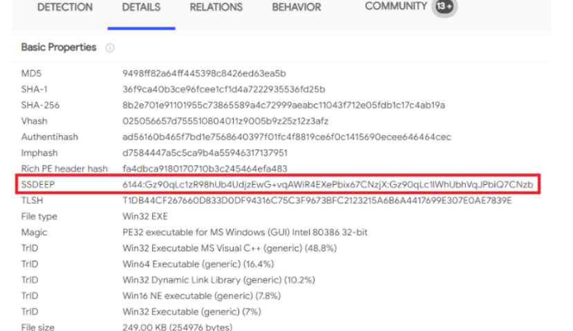你可能已經注意到,如果我們掌握了哈希值,識別惡意文件就變得非常容易。然而,對於攻擊者來説,即使修改文件一位也很容易,這會導致哈希值發生變化。由於已知惡意軟件或勒索軟件的變種和實例眾多,使用文件哈希作為IOC(入侵指標)進行威脅追蹤變得非常困難。