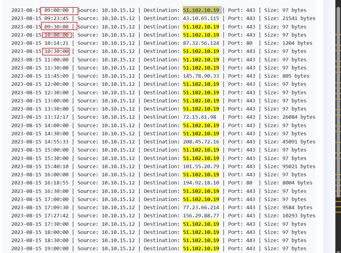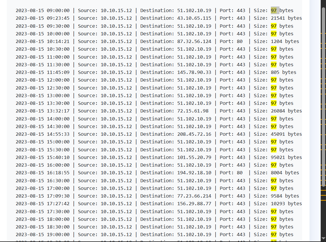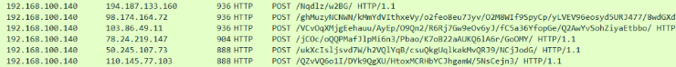 我們可以發現有個IP確實是一直髮送一樣的字節大小,這可能是c2的心跳包之類的