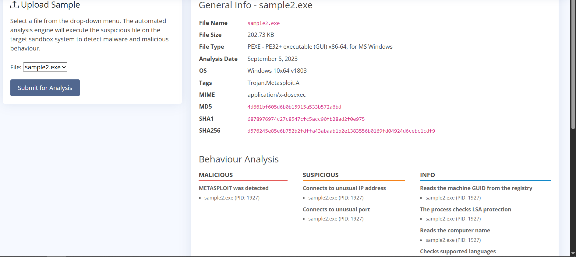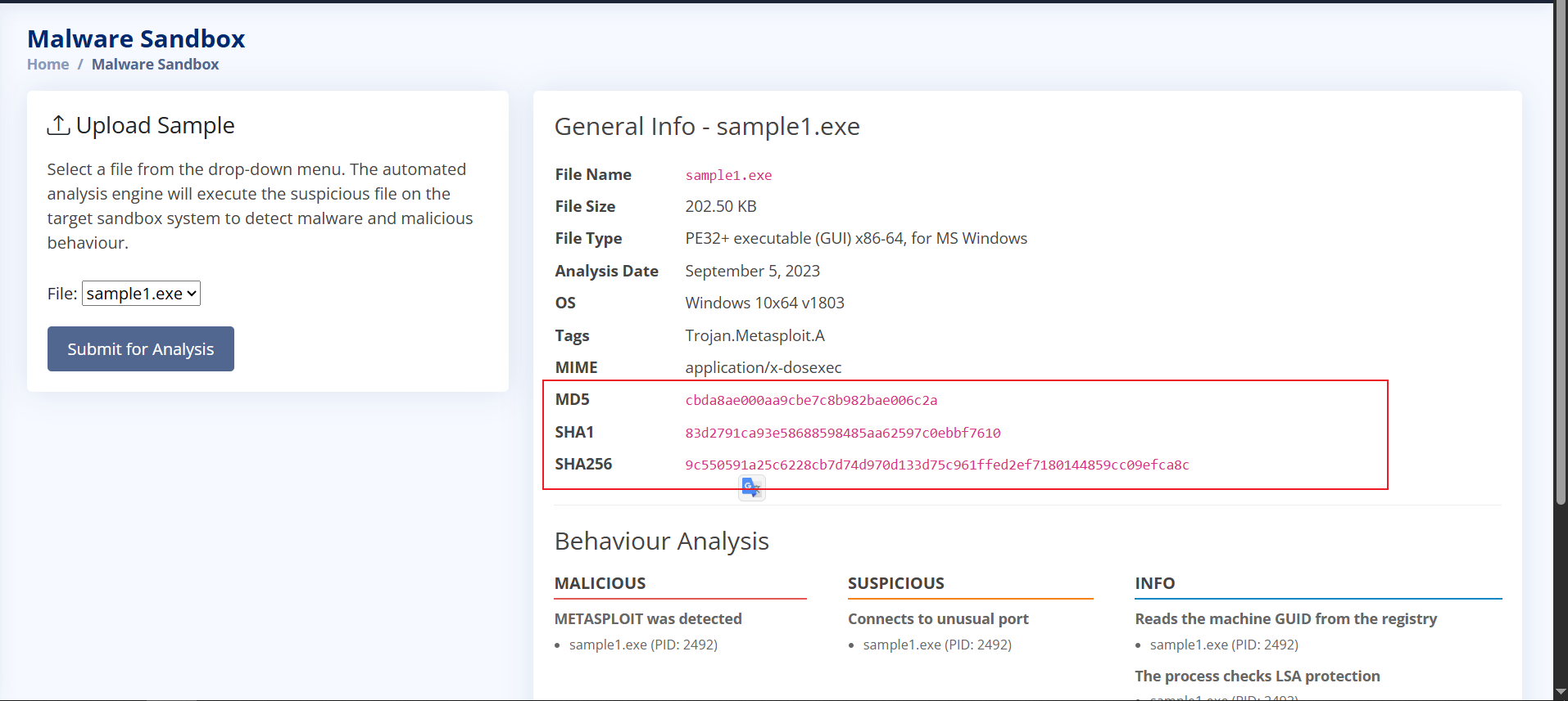 成功檢測到sample1.exe後,您收到的第一個標誌是什麼?