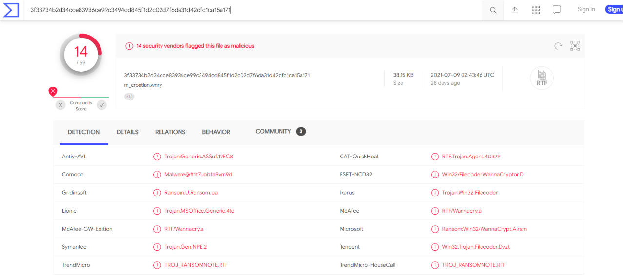 在上圖的哈希值下方,你可以看到文件名。在本例中,文件名是“m_croetian.wnry”。