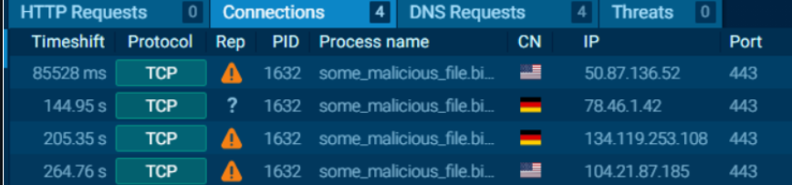 惡意進程(PID 1632)嘗試通信的 第一個 IP 地址是什麼?