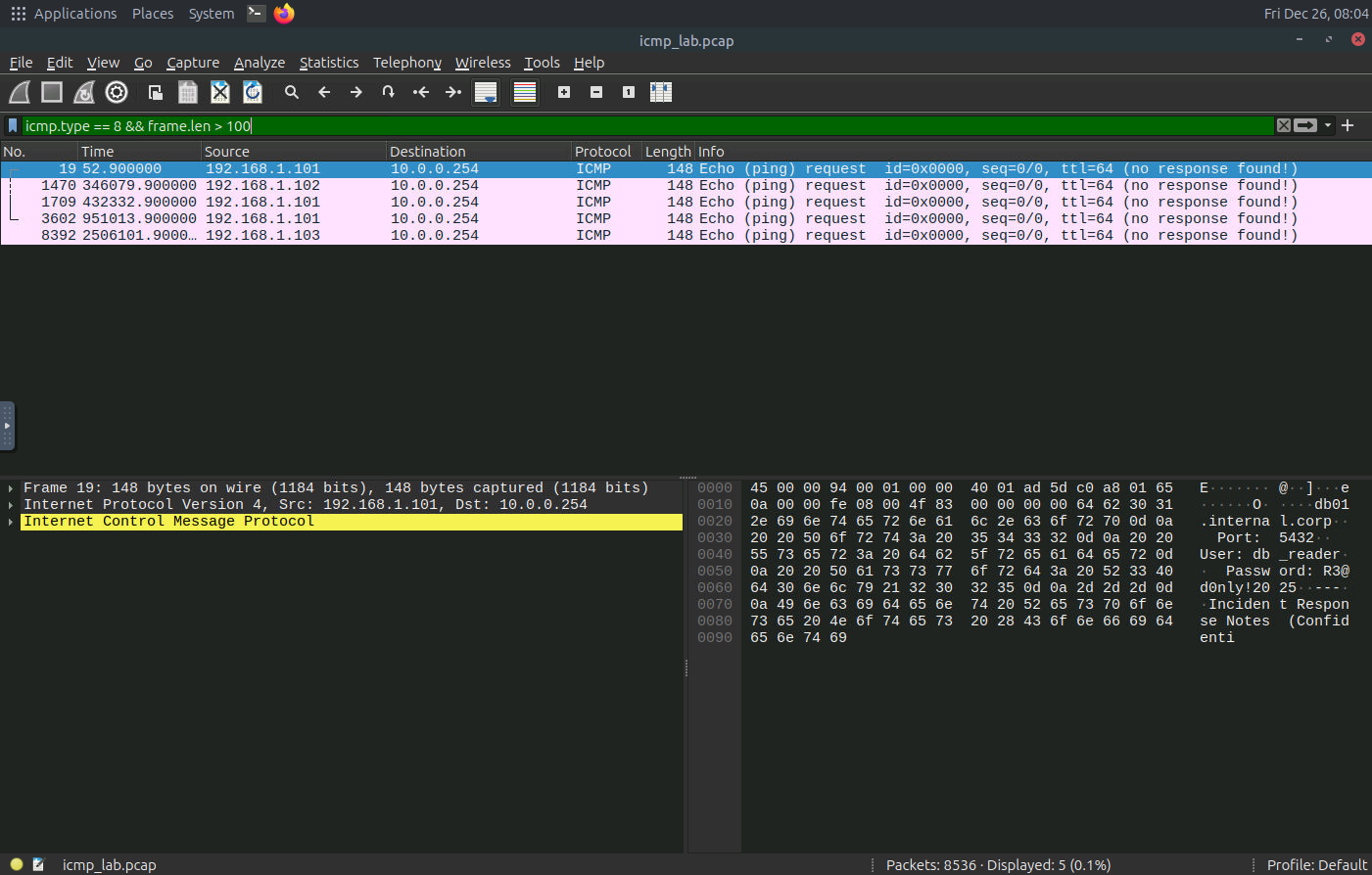 使用“task9.pcap”文件。編寫一條規則來過濾 IP ID “35369”,並針對給定的 pcap 文件運行該規則。檢測到的數據包的請求名稱是什麼?您可以使用以下命令:“snort -c local.rules -A full -l . -r task9.pcap”