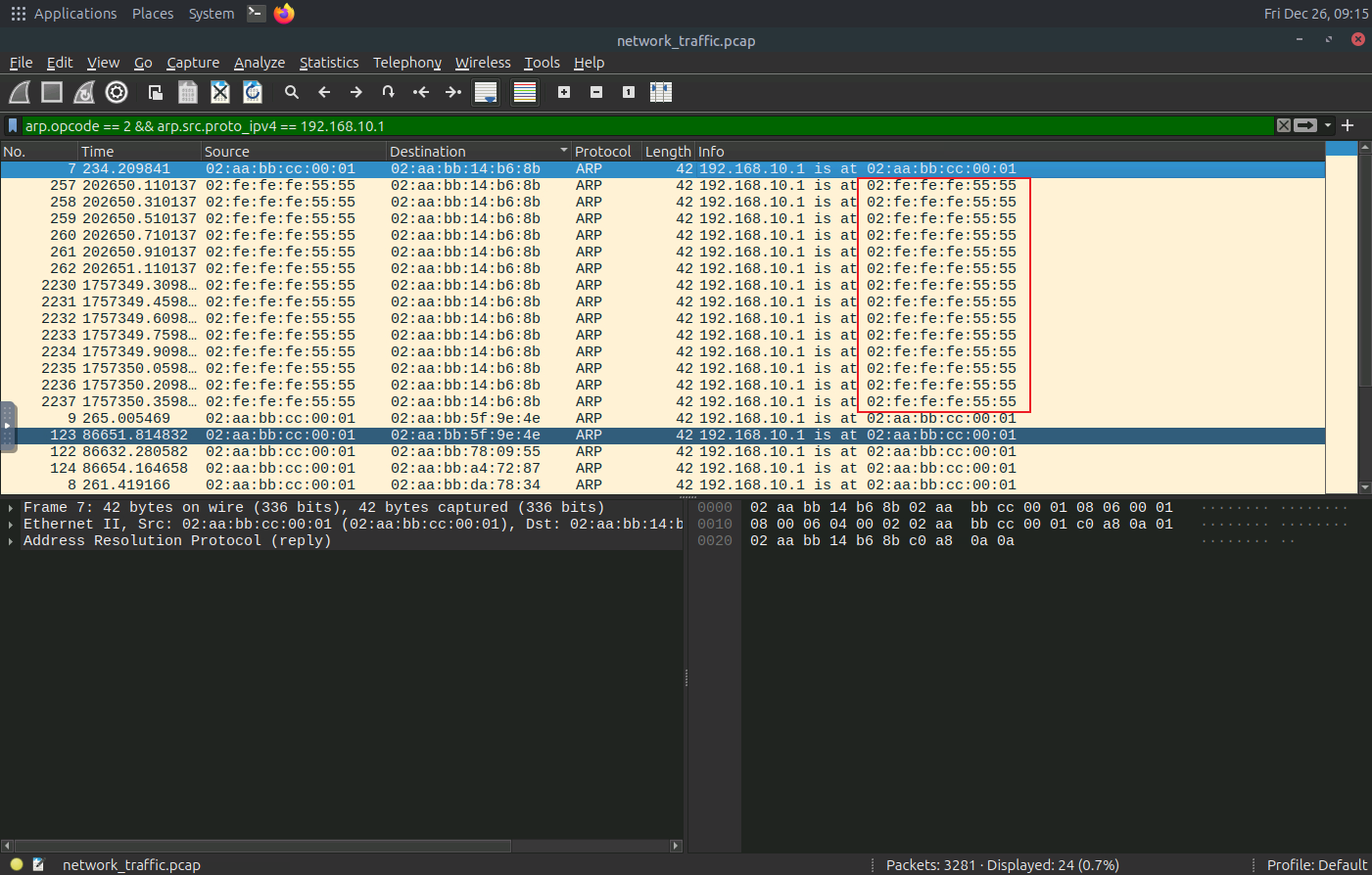 清除之前的告警文件並註釋掉舊規則。創建一條規則來過濾源 IP 和目標 IP 相同的UDP數據包,並將其應用於給定的 pcap 文件。有多少個數據包的源地址和目標地址相同?