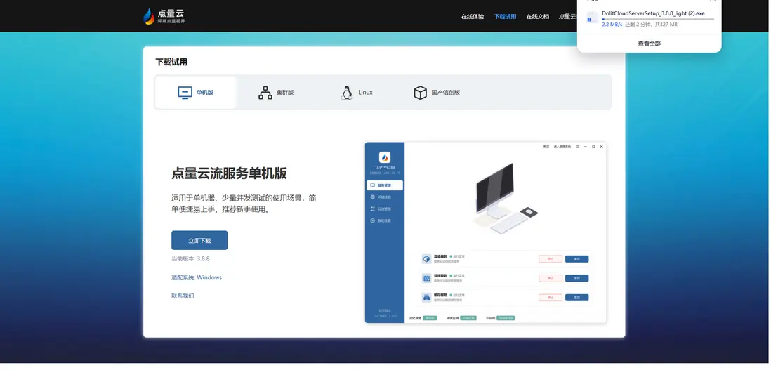 點量雲流系統作為一套專業的實時渲染軟件系統,為不同系統和應用場景提供了靈活部署方式:包括Windows系統下的單機版與集羣版,以及面向Linux和國產信創操作系統的版本。