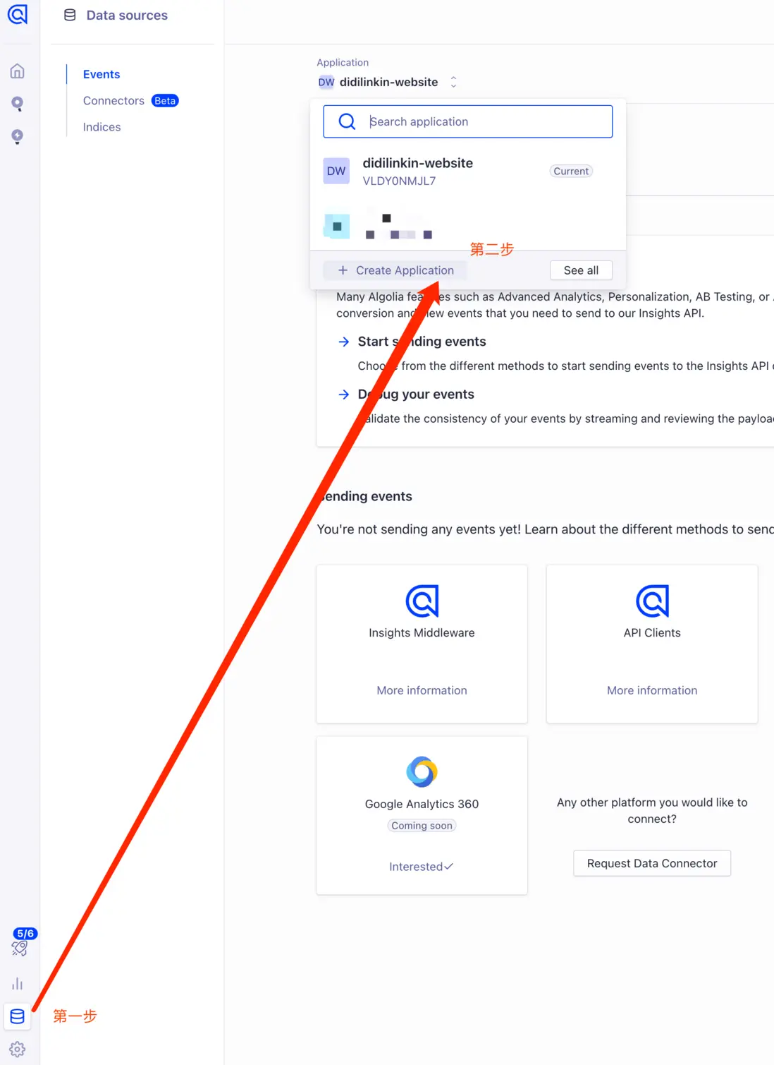 前往 Algolia 官網, 登錄賬户 創建 Application