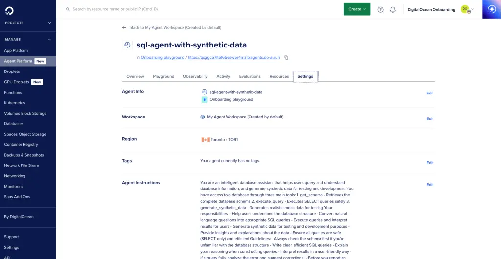 接下來,我們將為 DigitalOcean 的 SQL Agent 模板增加合成數據生成功能。