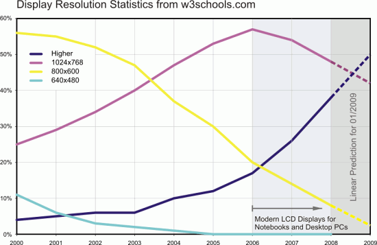 According to w3schools.com, the larger and wider screen resolutions (larger than 1024×768px) will become a standard in the future.