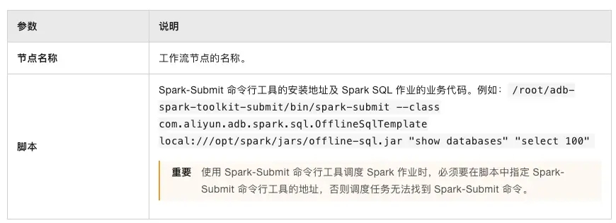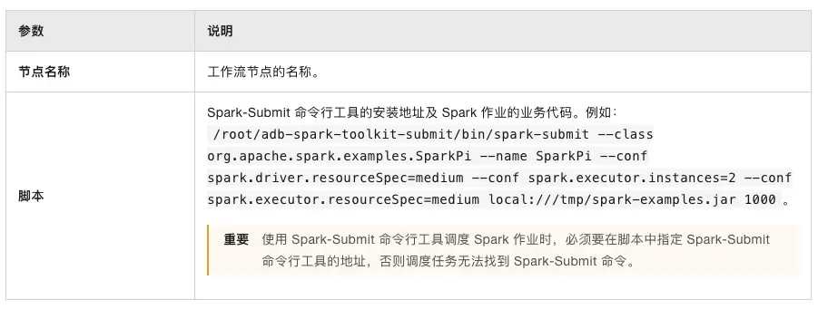 説明:您只需要配置keyId、secretId、regionId、clusterId和rgName這些必填參數。如果您的Spark Jar包在本地,還需要配置ossUploadPath等OSS相關參數。