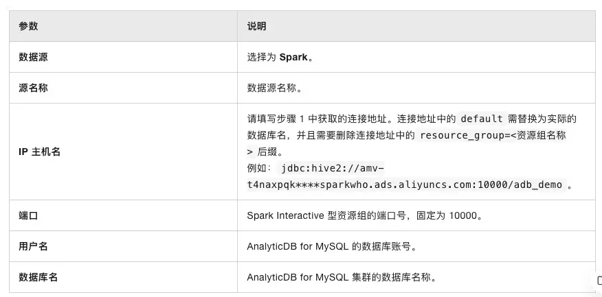- 單擊創建數據源,選擇數據源類型為Spark。