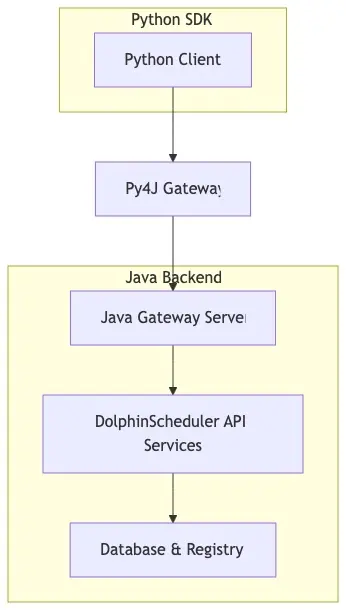DolphinScheduler採用Py4J框架實現Python與Java的跨語言通信,其架構如下: