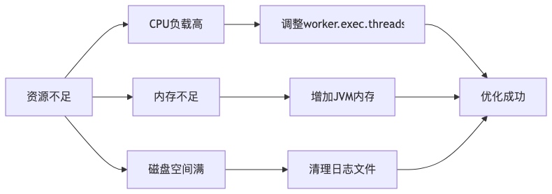 # Master併發控制 master.exec.threads=100 master.exec.task.number=20 # Worker併發控制 worker.exec.threads=100 # 資源預留配置 master.reserved.memory=0.1 worker.reserved.memory=0.1 properties7. 日誌分析與監控
