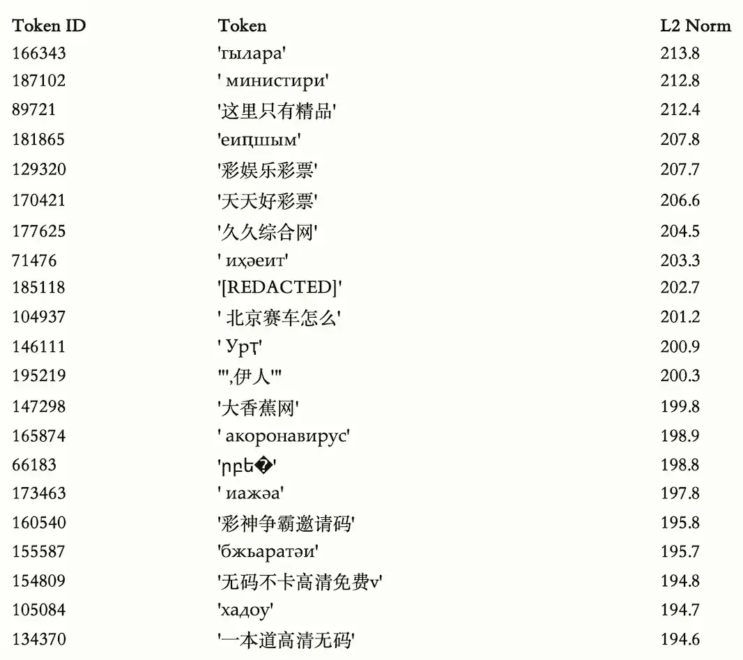 GPT-oss 權重公開後,開發者用反向分析方法挖出了中文訓練集中的大量異常 token。