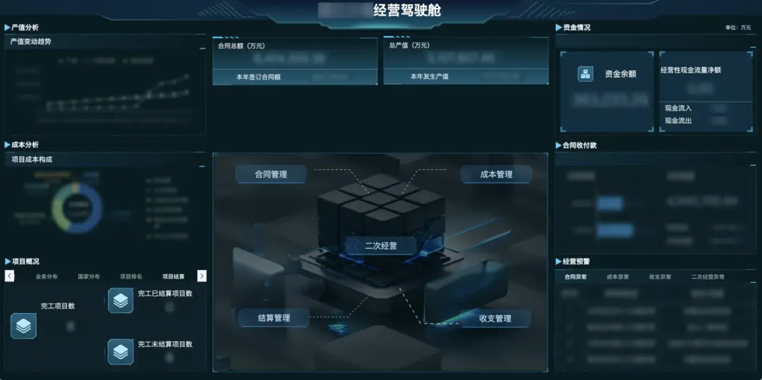 - 業務領域/職能管理駕駛艙:針對財務、項目、採購、安全、人力等特定業務領域或管理職能,設計專題駕駛艙,提供該領域核心管理指標的實時監控、多維度鑽取分析、異常波動診斷、績效對比等功能,支持精細化運營管理。