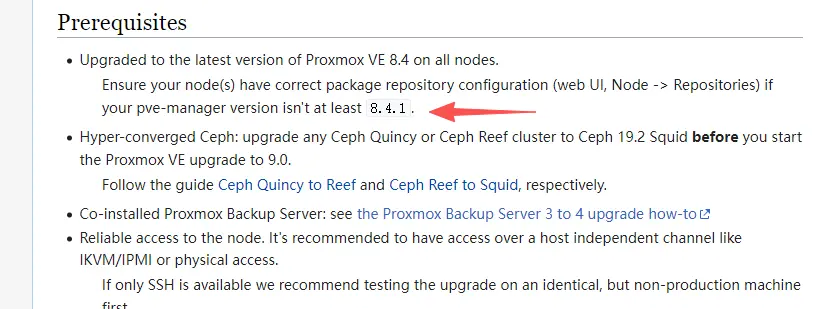 升級過程可以參照官方文檔:https://pve.proxmox.com/wiki/Upgrade_from_8_to_9
