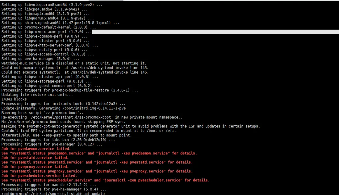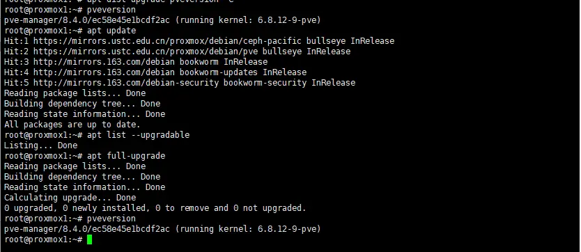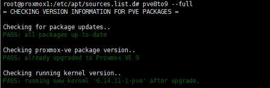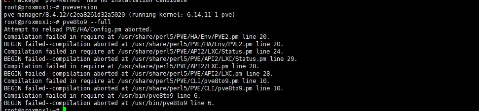 proxmox8升級,需要使用pve8to9進行升級。執行pveversion確認當前的 Proxmox版本,當前pveversion版本為8.4.0,執行pve8to9 會報錯,需要update升級系統到8.4.1之後的版本的: