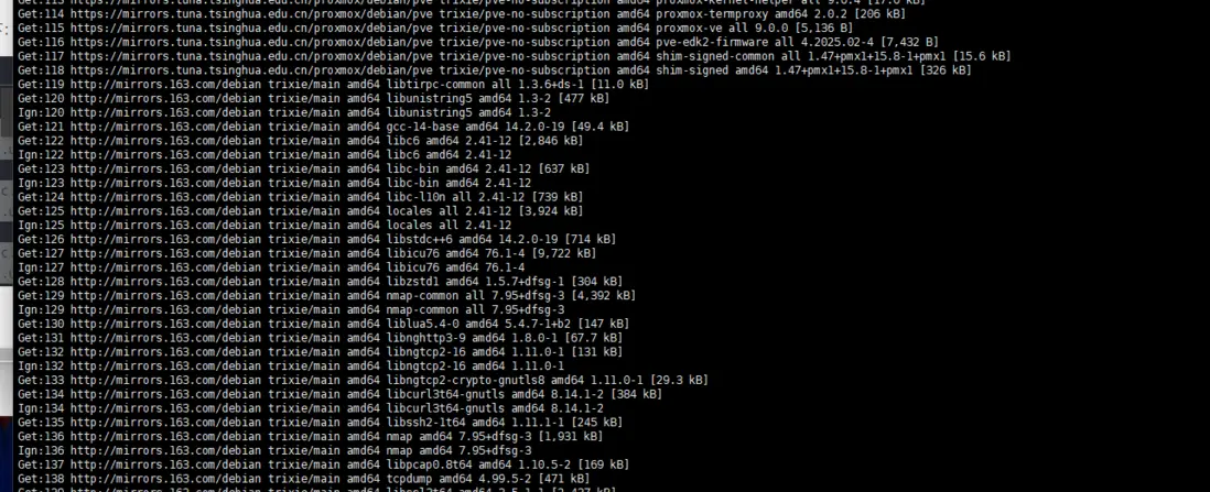 注意:由於我這裏debian 系統使用了163源,不知道為什麼更新的超級慢,我修改了/etc/apt/sources.list中163源為清華源: