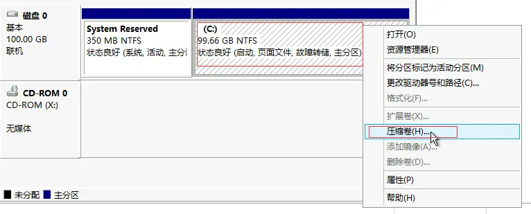 點擊 C 盤,鼠標右鍵,選擇壓縮卷。