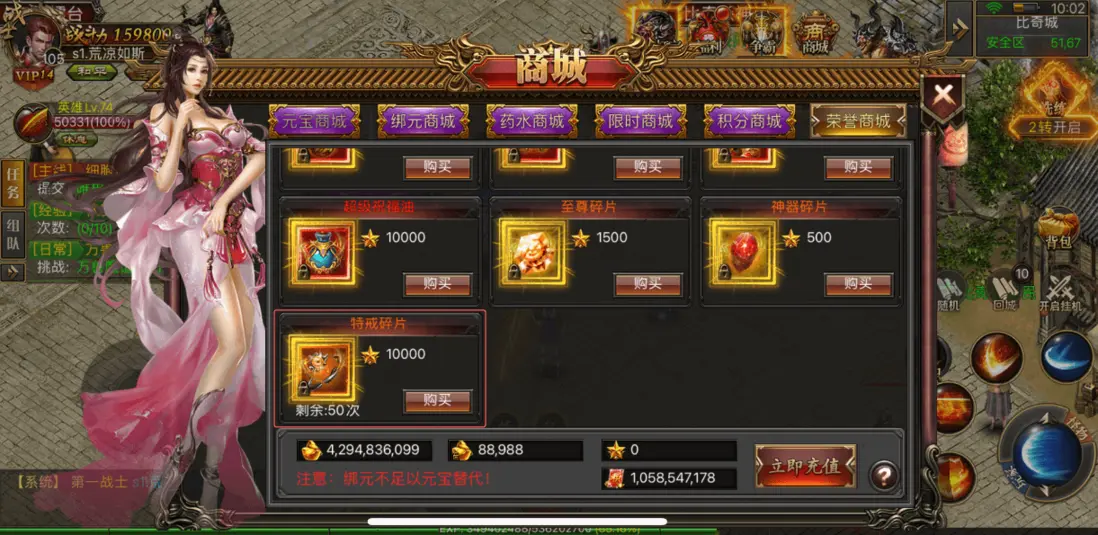 其中id = 7018值順序添加,item = 4094是特戒碎片的物品代碼,dayLimitCount = 50限定了每天只能兑換 50 次,{spid = "*", bind = true, type = 5, price = 10000, oldPrice = 0,}意思是綁定的、價格為 10000 榮譽值。