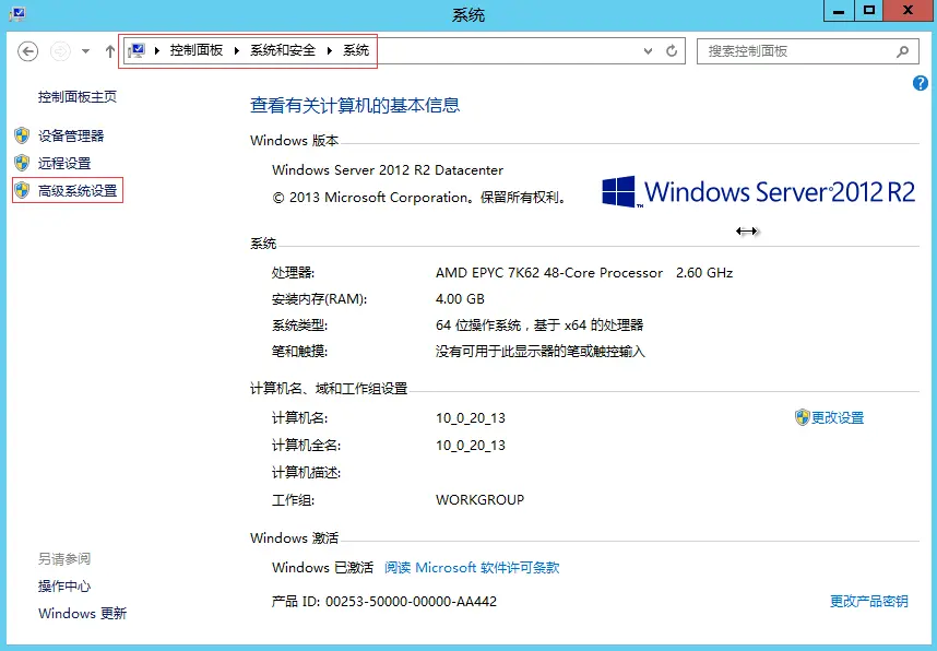 找到控制面板-系統和安全-系統,點擊左側高級系統設置。