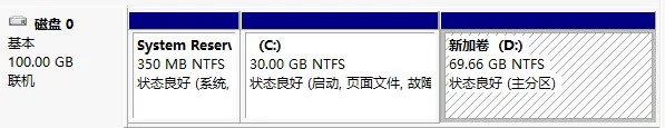 剛裝好的 Windows 系統只有 C 盤,需要手動創建 D 盤。