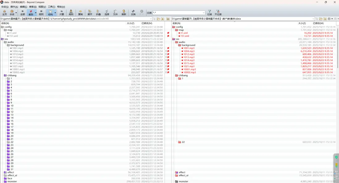 整合需要將服務端的D:\LYserver\phpstudy_pro\WWW\dev\data\目錄下文件,整合到安卓端完美傳奇.apk\assets\data\和蘋果端完美傳奇.ipa\Payload\client iOS.app\data\目錄下。整合不是單純的複製,客户端已有的文件,即使和服務端的內容不一樣,也保持客户端的原文件不動,只有客户端沒有的文件,才要將服務端的文件複製過去,我使用 Beyond Compare 工具對比處理的,大家可以直接在我分享資源中的整合客户端目錄下找到我整合後的客户端哈。