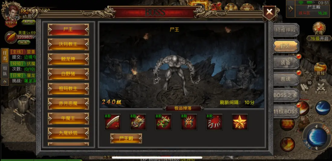 野外 Boss 我調整了刷新時間和掉落物品。原來的刷新時間數個小時太久,還有掉落物品添加榮譽令牌,獲取的榮譽值可以在榮譽商店兑換至尊裝備等稀有道具。