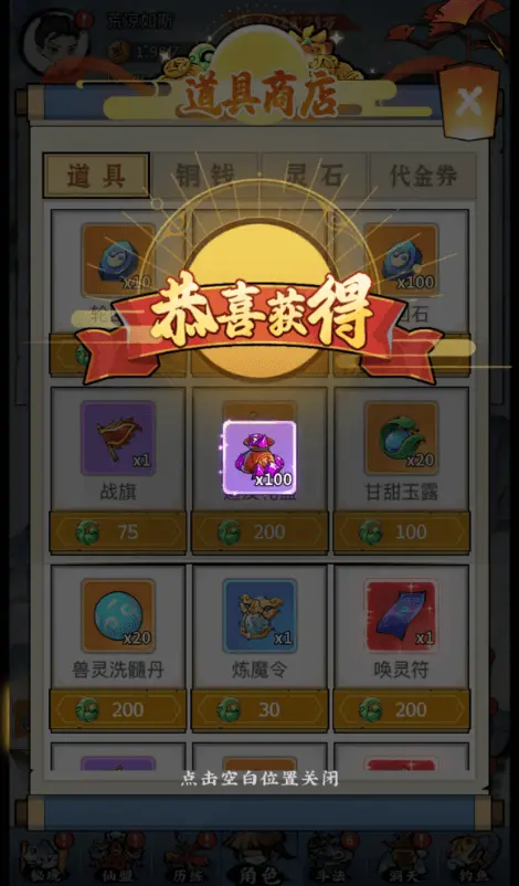 其中所需物品"need":[1,1,150]第一個1固定不變,第二個1是靈石的代碼,如果是代金券對應的代碼是8,150是數量。兑換物品"item":[1,905,100]中的905是高級星魂袋的代碼,100 是數量。修改後需要重啓遊戲生效,效果如下: