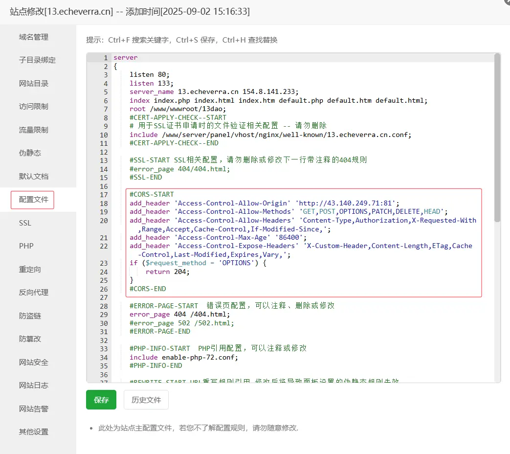 創建完後需要修改配置文件,使得遊戲服務器可以跨域訪問到資源服務器的文件。