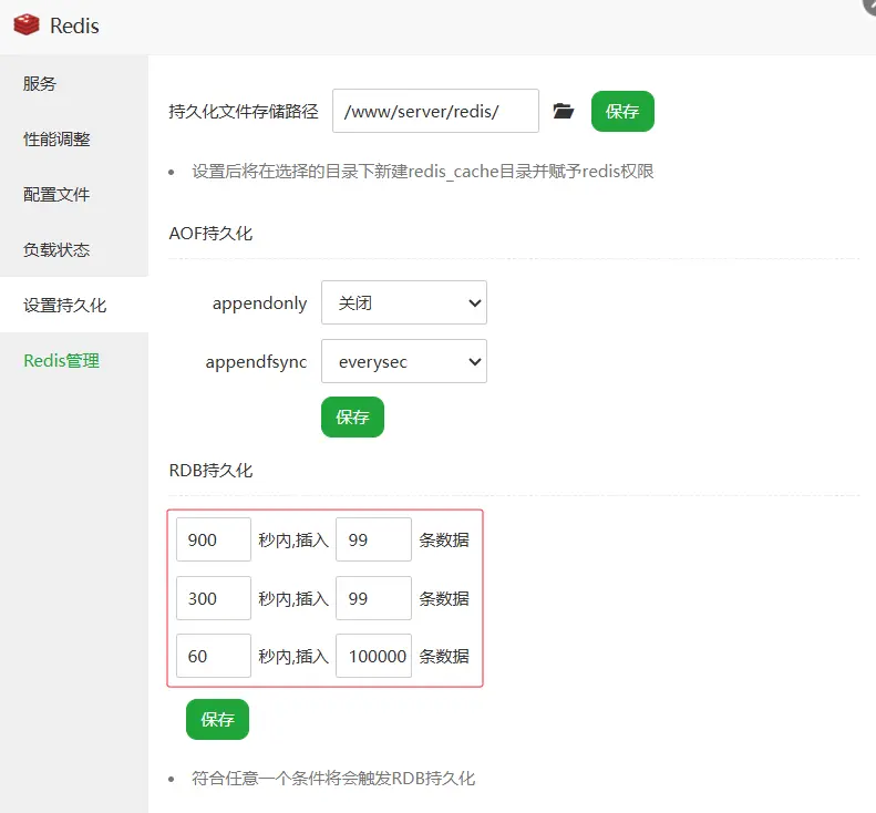 在設置持久化中RDB持久化 3 個時間分別設置 99、99、100000 條,這些設置是為了解決登錄排隊的問題。