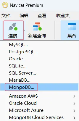 打開界面後,點擊左上角連接,選擇 MongoDB。