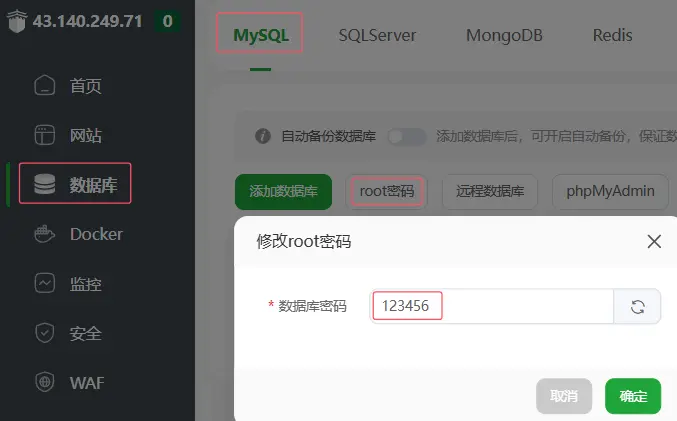 首先配置 MySQL,將 MySQL root 密碼修改為 123456。