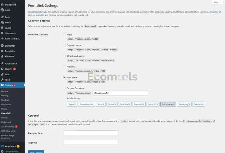 我們設置永久鏈接(Permalinks)是為了確保你的網站網址結構清晰、友好且易於管理。使用包含關鍵詞的永久鏈接(比如 /category/keyword/)有助於搜索引擎理解頁面內容,提高搜索引擎排名。