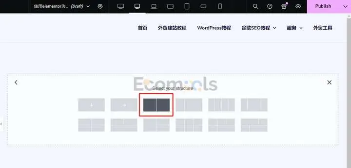 5. 選擇佈局結構。是兩列布局還是三列布局或者任意佈局。自己選擇即可,我們這邊用兩列布局作示範。