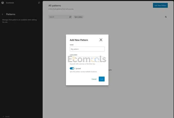 Patterns簡而言之就是能夠給網站添加可複用的自定義組件。個人比較少用,有了Elementor後可以替換掉這個功能了。