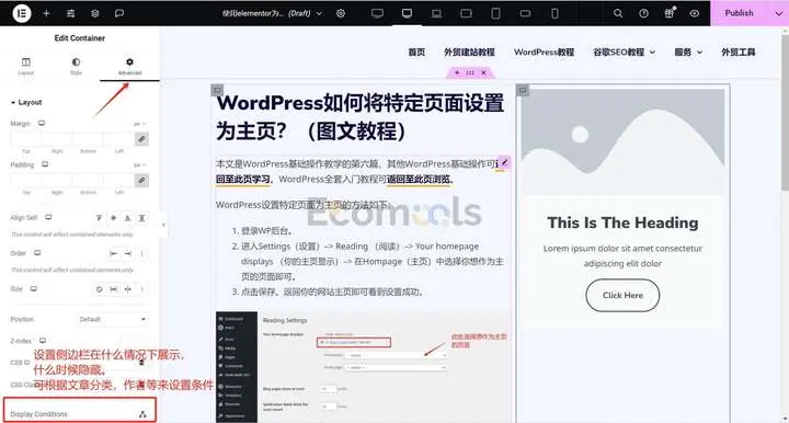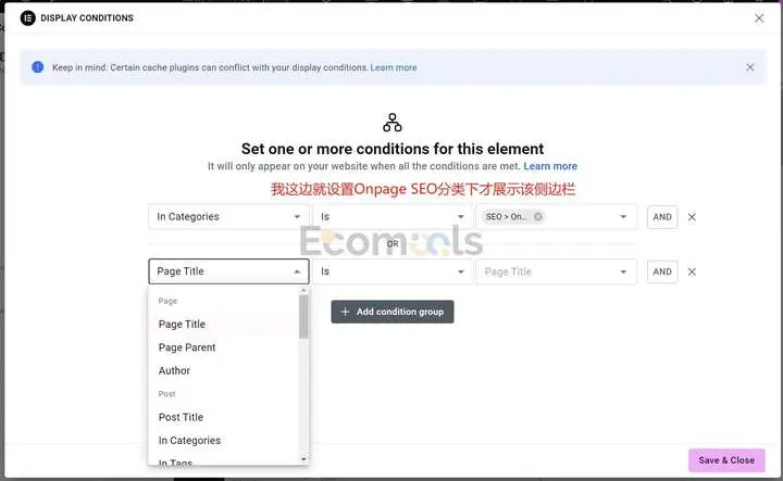 個人認為,使用Elementor Pro來搭建側邊欄最有用的設置當屬條件邏輯顯示功能,可以根據訪客的行為或所在頁面類型、所屬分類來決定顯示哪些側邊欄內容。