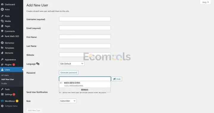Users選項卡對應的是WordPress中的用户功能,是管理網站訪問權限和控制不同用户能進行哪些操作的重要部分。