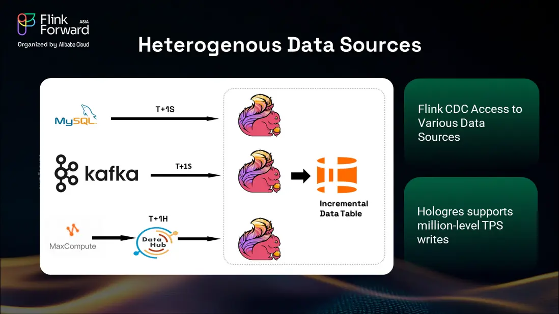 通過 Hologres 處理多樣化上游系統的能力,對外部數據源的支持也得到了極大增強。無論數據來自阿里巴巴內部系統還是外部賣家平台,我們的統一平台都能高效地處理和整合信息。